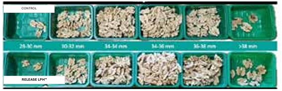 Figure 7: Fruit size of distribution of Walnut ‘Chandler’ after 15 L/ha RELEASE LPH™ applied four times (60 L per season). Treatment means differed significantly based on Duncan’s Multiple Range Test at the 5% significance level